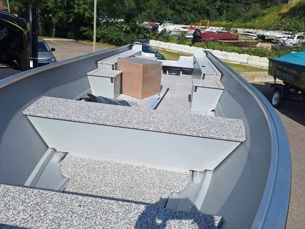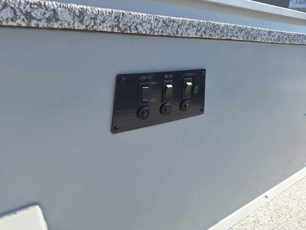 NEW MODEL FOR 2025 - TRAILER IS A KARAVAN 1800# SWING TONGUE BUNK TRAILER MOTOR HAS NOT BEEN INSTALLED YET... SWITCH PANEL, AUTO FLOAT SWITCH BILGE, NAVIGATION LIGHTS, LIVE WELL ASSEMBLY WITH AERATION AND A RATCHETING COVER