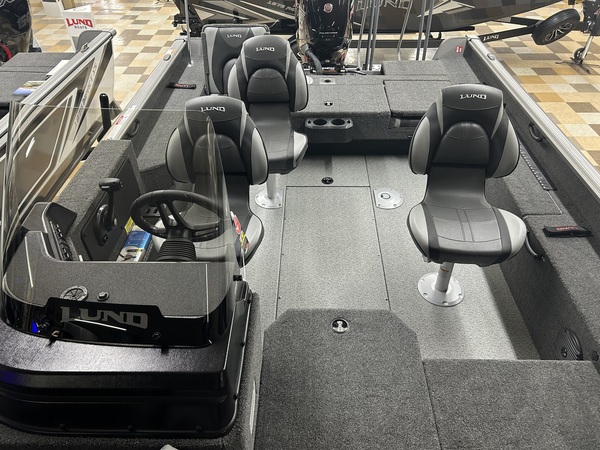 Can't decide if you want to fish or go tubing? No worries, with this boat you can do either. The features and accessories include wood free construction, composite transom, twin plated bottom (bow to amidship), 30-gallon fuel tank (27-gallon capacity), dual trak gunwale, custom starboard console, hydraulic steering with tilt helm, kicker fuel line, vinyl main floor with carpeted decks, aft and bow casting platforms, Mercury Analog gauges, full lighted instrumentation, Kicker stereo with 4 speakers, standard battery switch, horn, fire extinguisher, aft recirculating and pumpout livewell (30" long), bow livewell (20" long), bow trolling motor harness with plug, trolling motor foot pedal recess, LED interior lighting, bow and stern eyes, transhield cover, 4 stainless steel flip-down cleats, 3 battery holders with storage compartments, 6 seat bases with 3 ProRide seats, aft integrated jump seats, self-draining splash pan, lockable center bow rod storage, lockable storage, lockable port rod locker with 2 tubes, lockable glovebox, navigational lighting, stainless steel 4 step folding pan boarding ladder, bilge pump (1 pump auto/manual), bow deck mounting pad, drink holders, port splash pan insert, ski tow - base only (no pylon), storage compartments, soft-side cooler (24 can), bow cargo nets, aluminum propeller, Lund ruler, phone charger - wireless, starboard under console drawer, and travel cover. Trailer is equipped with a swing tongue, aluminum wheels, load guides, spare tire with bracket, tongue jack, LED lights, and retractable tie downs.