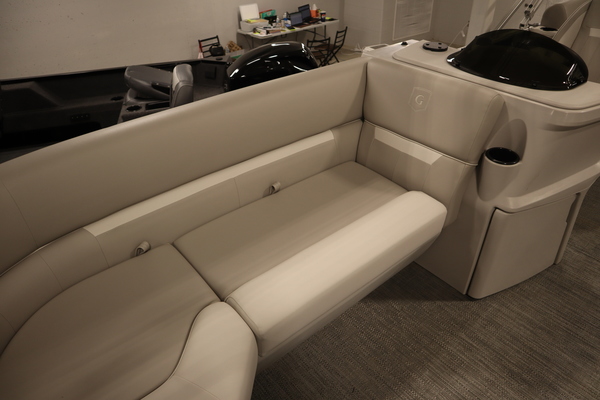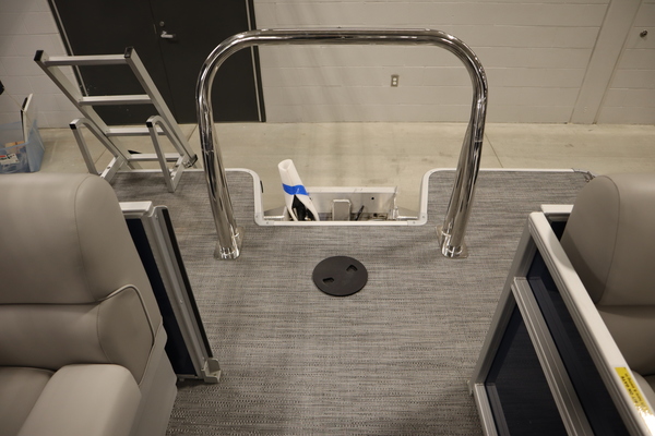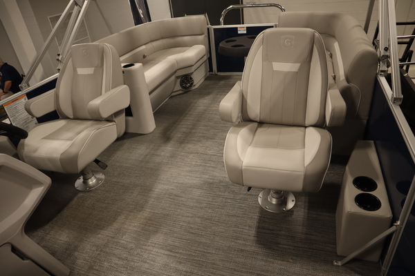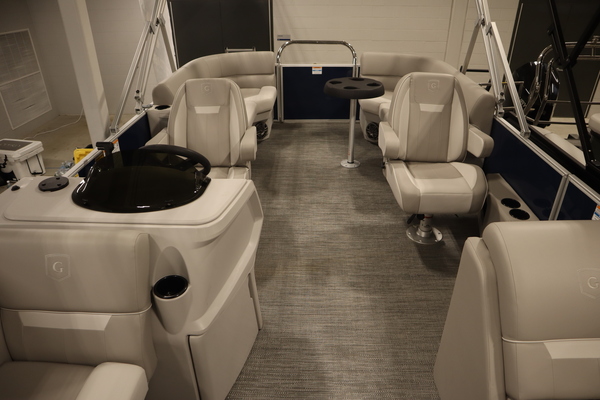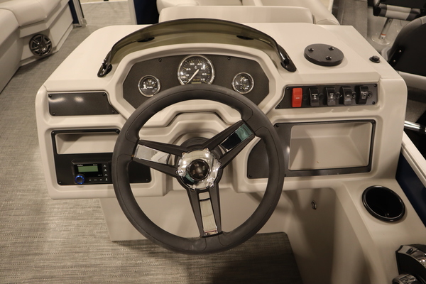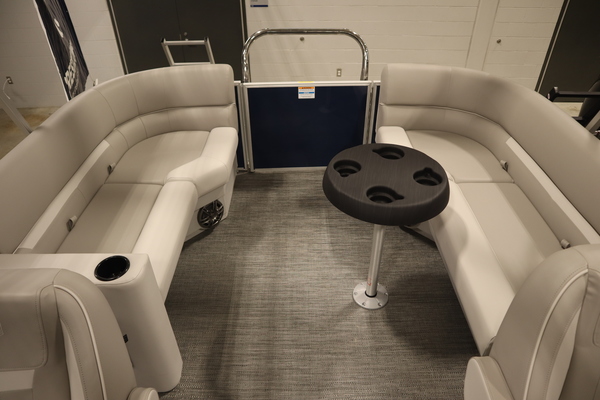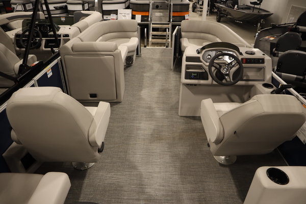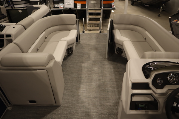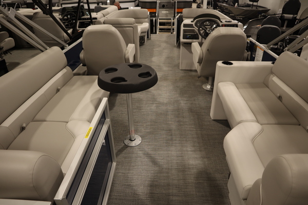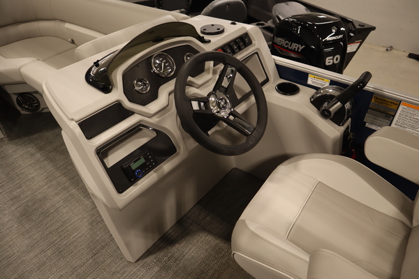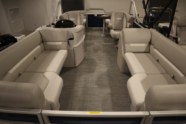 Price Includes Mercury 150ELPTEFI, Stainless Steel Prop, and a Tandem Axle Trailer with Brakes, 27" Sport Tube (25" Outer Tubes with 27" Sport Tube, Lifting Strakes; Standard Motor Pan and Fuel Tank; Heavy Duty Channels), Under Deck Skin with Inside Skirting, Outside Skirting, Steering (Sea Star Hydraulic with Tilt Wheel), Ladder, LED Docking Lights, Stainless Steel Fixed Cleats, Extended Rear Deck, Ski Tow Bar, Captain & Co-Captain?s Chair Upgrade with Swivel, Slider & Reclining Features on 10? Fixed Pedestal, Four Removable Cupholders, Round Table; Stern with Built in Cupholders, Stereo; Clarion Plus (CMM-10 head unit with LCD display, Bluetooth, AUX input, 4x20W RMS output, and (4) Speakers with Gray Grilles), Full Height Smooth Navy Rail Skins with Anodized Silver Rail Frames, Low Band Silver Matte Pearl Graphic, Platinum Weave Flooring, Warm Gray Furniture with Glacier Accent Color, Black Playpen Snapless Mooring Cover, Price includes dealer prep and freight and all factory rebates,