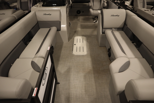 Price Includes a Mercury 200XL, Stainless Steel Prop, Tandem Axle Trailer with Brakes, Hydraulic Steering with Tilt wheel, Upgraded Full length Center Log, Ski Locker In Floor Storage, Gray Seagrass Weave Flooring, Standard Stereo System w/ 4 speakers, 12Volt Receptacle w/ Dual USB Charging Ports, Custom Fiberglass console with Raised Helm Platform, Windshield, and OEM Analogue Gauges (Speedometer, Tachometer, Voltage and Fuel), Led Docking Lights and LED Navigation Lights, Phone Charger & USB's in Furniture, Flip Up Cleats, Battery Cut off switch with one battery, Upgraded Power 10? Bimini Top with Quick Disconnects, Lounge End Table, Roto cast Furniture bases with SE Gray soft touch vinyl Interior and integrated SS Cupholders, Upgraded High Back Captain?s and Co-Captain?s chairs, Ski Tow Bar, Upgraded Lillipad Ladder, and Black Playpen Cover. Color is White Panel with Charcoal Accent, BLACK GRAPHICS, Textured Black (Powder Coat) Rails, Gray Interior and Seagrass Flooring. Price includes dealer prep and freight.