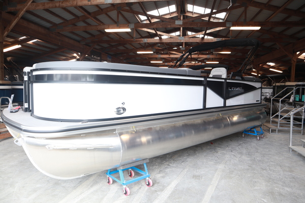 Price includes a Mercury 200ELPTEFI, Stainless Steel Prop, Tandem Axle Trailer with Brakes and Center Log Kit, Triple Tube Package (three toons, lifting strakes, aluminum underskin,) Console with USB/USBC charger, Horn, Toggle Switches, Tach, GPS Speedometer, Trim and Fuel Gauges, Hydraulic Steering w/ Tilt Wheel, Custom Reclining Helm Seat and Passenger Seat w/ swivel and slider, Chrome Package (Chrome Decals, Cleats, Premium Steering Wheel, and Docking Lights) and Convenience Package (Wireless Charging, Glove box, Interior LED Light on Console) Full Deluxe Gray Vinyl Floor, Premium Ski Tow, Black Factory Snap Cover & 9' Power Bimini Top w/ Black Frame, Heavy-Duty 4-step Boarding Ladder, Kicker KMC45 stereo Bluetooth compatible w/ 4 speakers, Black Painted Fence Rails & Bimini Rails, Silver Deck Trim Band, White Metallic Fence with Black Graphic, Gray Upholstery w/ Monochrome Accents and Rotomolded Seat Bases, Price includes dealer prep and freight.