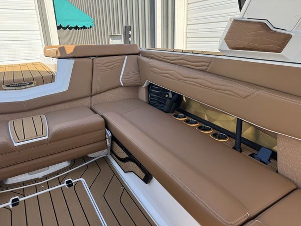 TRANSOM SEATING- When it?s time to kick back and relax, check out the rear transom seats aboard the Super Air Nautique G25. Adjacent to the swim platform, these rear-facing seats allow you to spend time with family and friends while they are in the water.