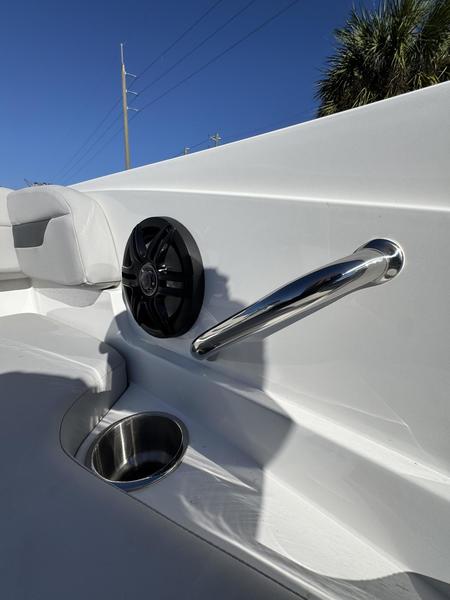 Stainless steel rub rail, cup holders, cleats, and grab handles