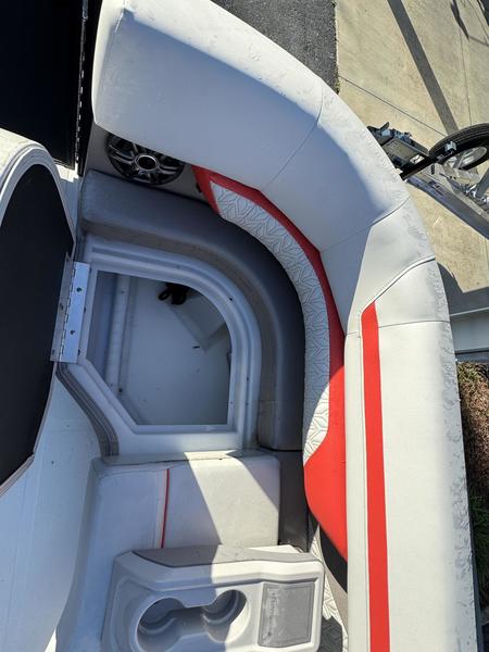 Toy box storage bench, rod storage with clips, and plenty of in-deck storage