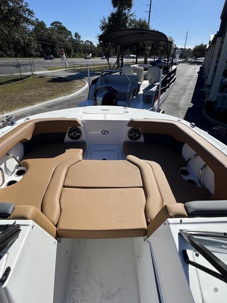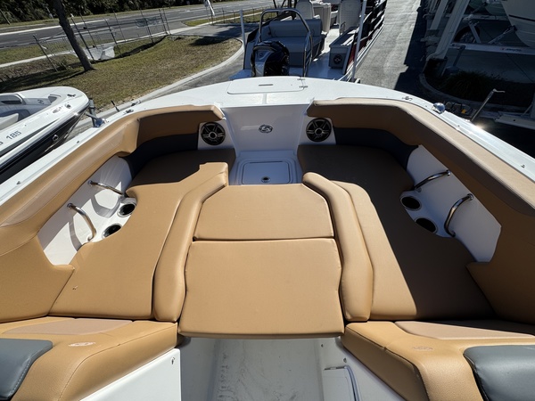 Spacious Deck Layout: Wide-beam design with wraparound seating, large bow lounge, and versatile floorplan perfect for family outings and group cruising.