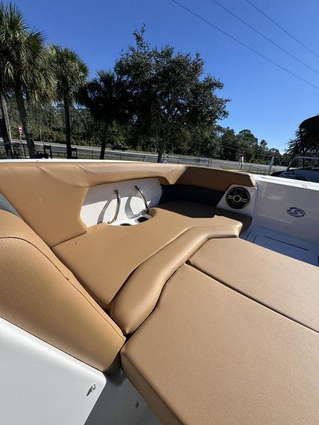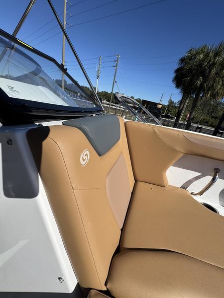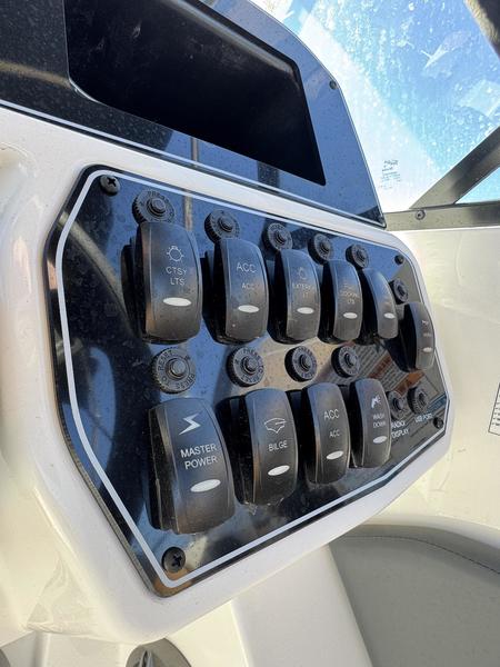 Convenient Head: Enclosed head with sink in the starboard console for comfort on longer trips.