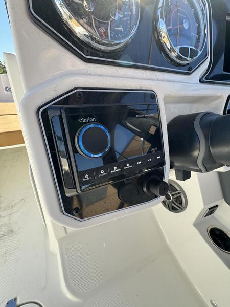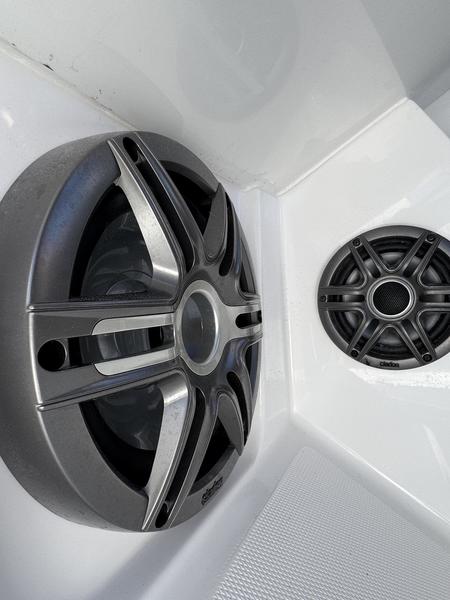 Premium Onboard Entertainment: Fusion audio system with four speakers for music and fun on the water.