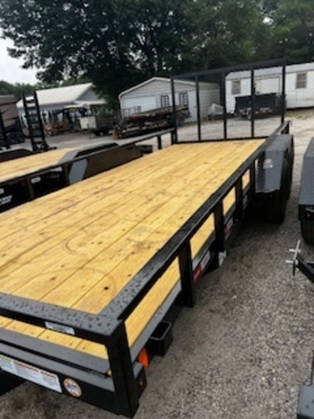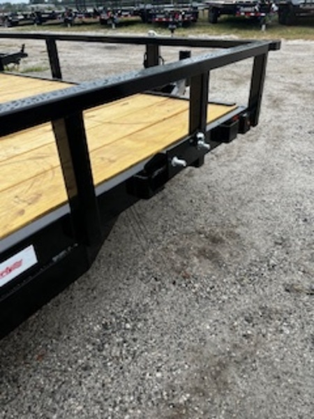 2-3500lb brake axles, 4" channel frame, full wrap tongue, 1.5x2.5 tube top rail, adj. coupler, 7k drop leg jack, spring assist gate