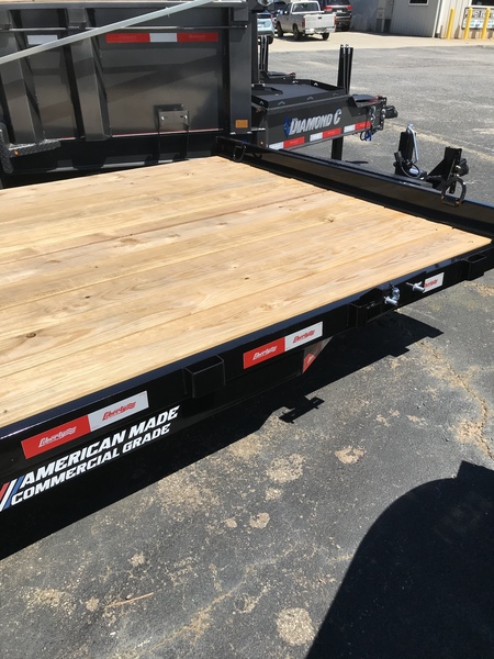 2-3500lb brake axles, 2' Blackwood dove tail with 5' slide in ramps, tongue box, 7k drop leg jack, adjustable coupler, 4" channel frame