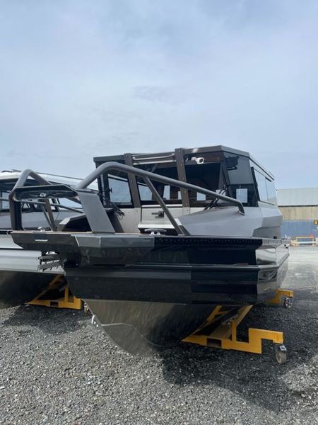 All Profish Standard Features Plus: Rear Wall w/Bifold 4 section door, Radar Mount, VeeBerth lining, 70L cooler under center insulate fishbox w/livewell, Low Rail Transom Cages, Trim Tabs, Keel Line Upgrade, Bow Ladder, Bow Trolling Motor Mount, Anchor for Drum Winch, Stage 3 Paint in Metallic Gunmetal wBrown UFlex Lining. Boat is complete and in transit. Will be rigged with dual Mercury 175hp outboards.
