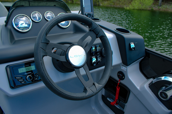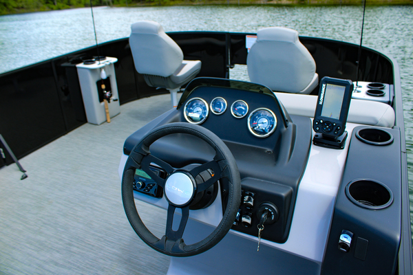 Price includes a Mercury 60ELPTEFI CT, Aluminum Prop, Single Axle Trailer, Console with USB/USBC charger, Horn, Toggle Switches, Tach, GPS Speedometer, Trim and Fuel Gauges, Lowrance Eagle 4x Fish Finder, Helm Seat w/ locking base & Passenger Helm Seat, Full Gray Deluxe Vinyl Floor, Black Factory Snap Cover & 9' Bimini Top w/ Black Frame, Heavy-Duty 4-step Boarding Ladder, Kicker KMC45 stereo Bluetooth compatible w/ 2 speakers, Black Painted Fence Rails & Bimini Rails, Silver Deck Trim Band, Black Metallic Fence with Charcoal Graphic, Gray Upholstery w/ Monochrome Accents and Rotomolded Seat Bases, Price includes dealer prep and freight.