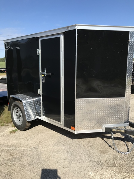 5x8 24" Vnose 3500# axle, 15" tires, .030 alum siding, 66" interior height, 16" ATP stone guard, side wall vents, 24" side door w/ cam lock