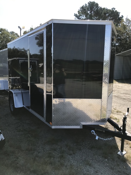 6x12, 3500# axle, 15" tires, 24" vnose, 24" ATP stoneguard, 75" interior height, 32" side door w/cam lock, ramp door, side wall vents, 4 recessed d-rings
