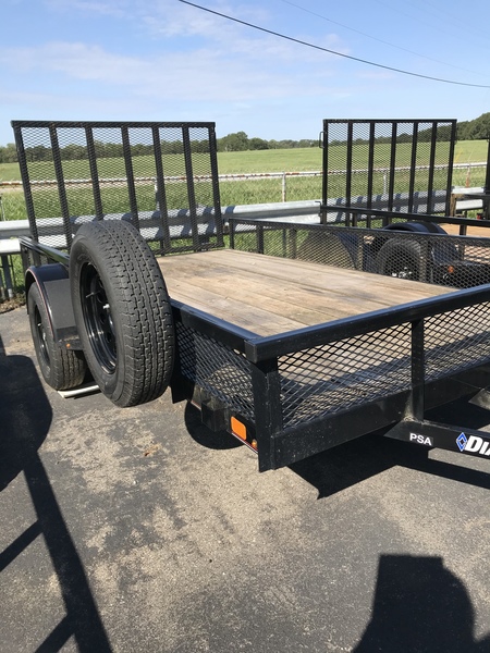 76X12 DIAMOND C PSA, 3500# axle, 15" tires, mesh sides, tubing gate, flip jack, bulldog coupler, tubing rail, spare tire included