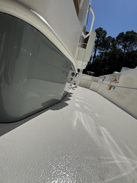 Durable Exterior: Coastal white rub-rail with stainless steel insert for protection and longevity.