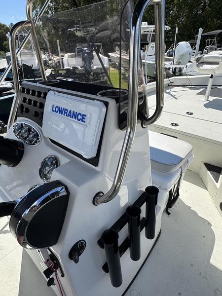 The 2022 Ranger RB200 is a 20-foot center console boat engineered for inshore and nearshore fishing. Built with all-welded aluminum construction and SuperGlass reinforcement, this boat offers durability, strength, and a lightweight design for anglers seeking both performance and reliability. The pad-bottom hull delivers a dry, efficient ride even in shallow waters, while a wide bow casting deck, dual livewells, and ample storage make it perfect for serious fishing adventures.