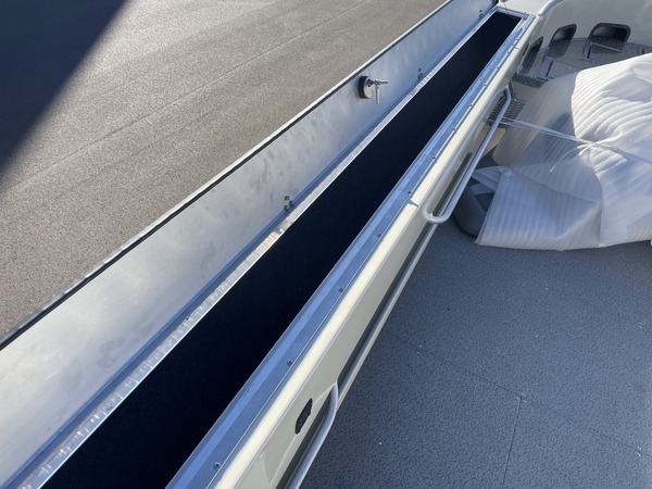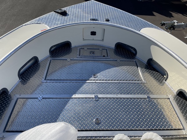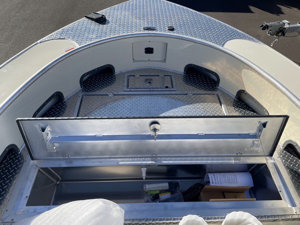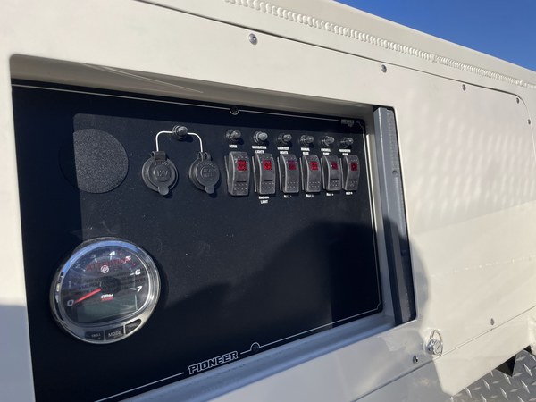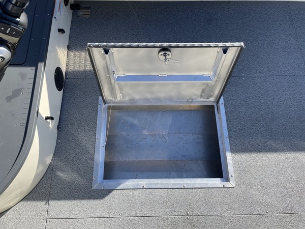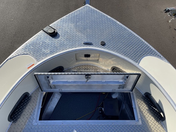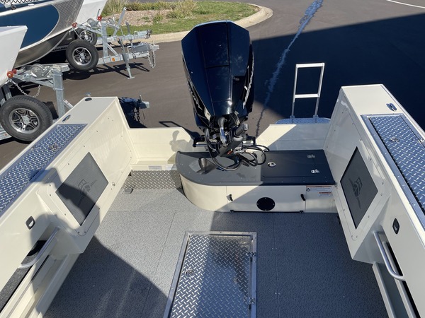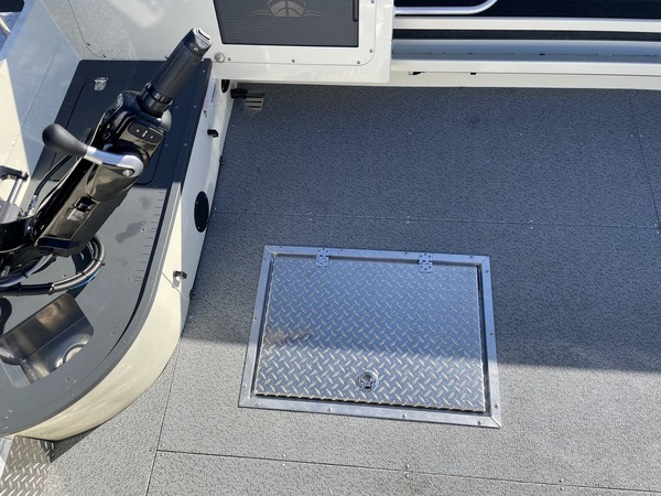 An impressive list of features and options completes the Pioneer fishing experience. The Pioneer’s casting-deck bow provides the safety and comfort of a traction-rated diamond treadplate surface and multiple toe-kicks. The generous bow area also provides ample space for today’s larger electric trolling motor mounts, easy-access battery storage (up to three Group 31 batteries), and a convenient rode locker. With in-floor storage (20 gal.), bow livewell (30 gal.), and lockable gunwale-top rod storage, you won’t need to leave anything at the dock. Multiple seating combinations and suspension options provide comfort for any fishing style, and tiller steering or optional center console provide comfort for any driving style. Exclusive lockable sliding-door sounder boxes deliver protection and convenience at the transom. Every inch of the Pioneer has been carefully designed and built to bring open-boat anglers ease-of-use, ruggedness, and unmatched safety.