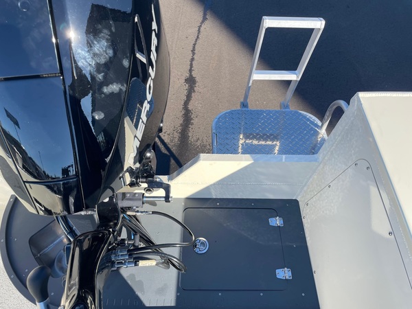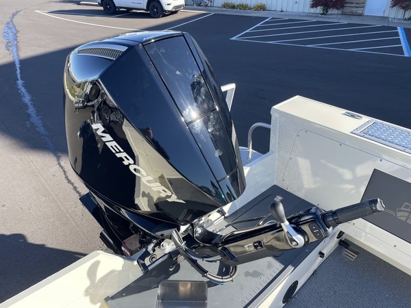 Boat comes equipped with a Mercury 200XL motor with tiller handle.