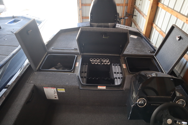 Price Includes a Mercury 75ELPT EFI, Aluminum Prop, Cable Steering w/ Tilt Wheel, Karavan Trailer w/ Brakes & Ratchet Tie Downs, Driver and Passenger Seats w/ Capt Cooler in the Middle, 3 Bank Onboard Charger, Flip Up SS Cleats, 2 Fishing Seats and Post w/ 3 across Bow Seating Bases, Stern 35 Gal Aerated Livewell w/ Timer and Recirc, Center Rod Locker with 8 Tubes and Rack, 12 Tackle Tray Boxes, 31 Gallon Fuel Tank, Boat Cover, and 1 Start Battery. Color is Metallic Black