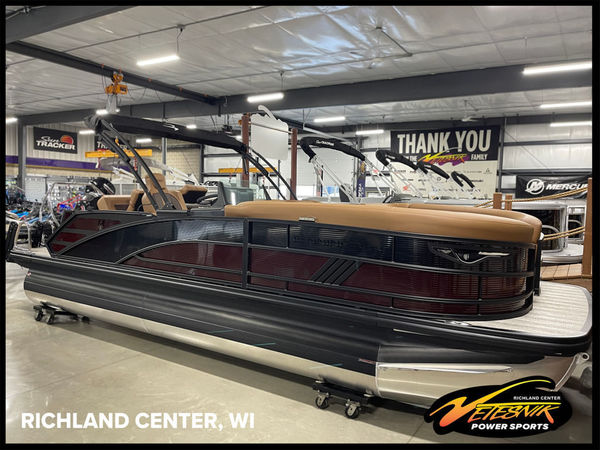 LOADED UP WITH ALL THE MUST HAVE'S! VIVID12 GUAGE, BLACKOUT PACKAGE, MOORING COVER, SPS TRITOON, POWER STEERING, PONTOON GUARDS AND MORE! PRICE INCLUDES BOAT & MOTOR, HERITAGE BUNK TRAILER SOLD SEPARATELY.