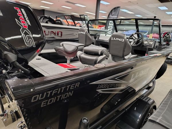 1800 EXPLORER SPORT ALL BLACK BOAT COMPLETE VINYL FLOOR MERCURY 115 ELPT PRO XS 4S ALUMINUM PROP PRIMARY ENGINE - FACTORY RIG MERCURY MECHANICAL ENGINE CONTROL KICKER FUEL LINE ROLLER TRAILER PAINTED BLACK W/BRAKES 1 ADDITIONAL PRORIDE SEAT W/SOLID PED OUTFITTER EDITION SPLASH PAN INSERT - PORT SIDE SPLASH PAN INSERT - STARBOARD SIDE FIRE EXTINGUISHER PHONE CHARGER - WIRELESS ROD TUBE OPTION - PORT CENTER ROD LOCKER 3 BANK MINNKOTA ONBOARD CHARGER LADDER MOUNTED ON STARBOARD SIDE - STANDARD TRAVEL COVER