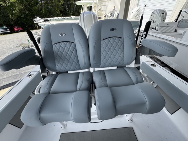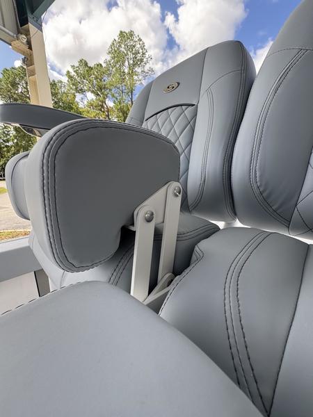 Features flip-up bolsters, integrated rod holders, tackle storage, and space for a cooler?designed for comfort during long runs and functionality while fishing.