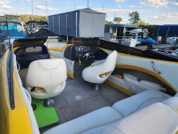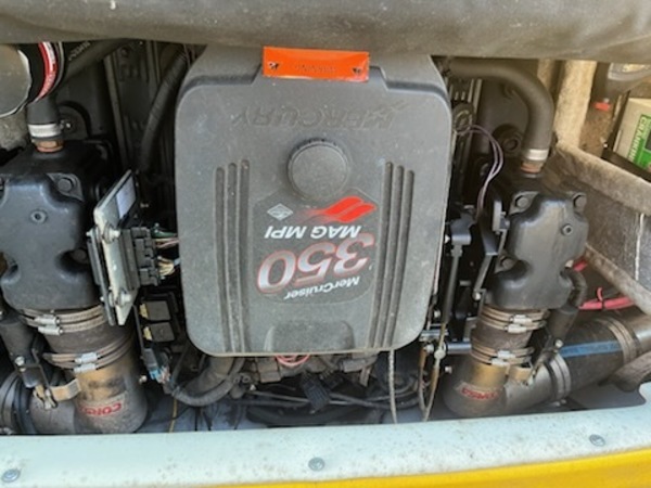 One owner with 450 hours, 350 Mercruiser, 300 Horsepower 350 Mag Bravo 1, Thru hull / silent choice exhaust. Tandem axle trailer included. Sharp boat, runs great.