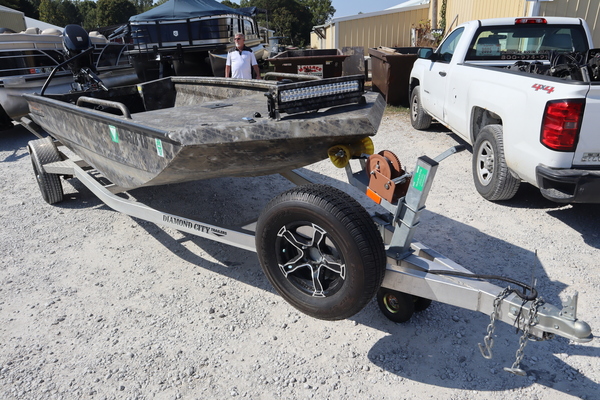Price Includes a Suzuki 50HP 4 Stroke Tiller w/ Stainless Steel Prop, Diamond City Single Axle Trailer, Spare Tire, Hydraulic Jack Plate, Bow Light Bar, Grab Handle, Built In Gas Tank w/ Gauge, Manual Bilge Pump, and Battery