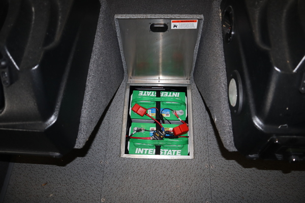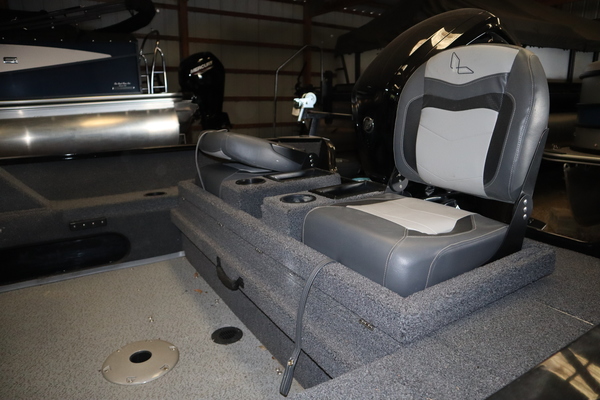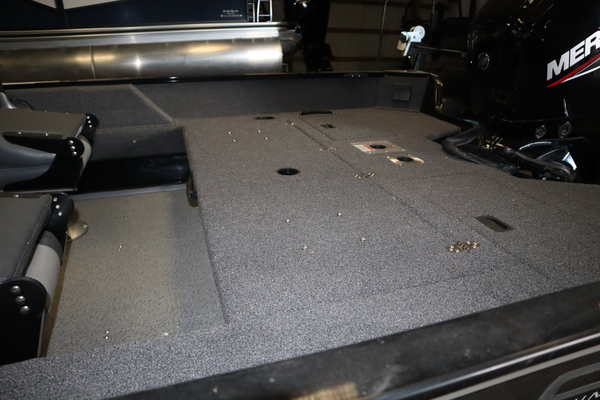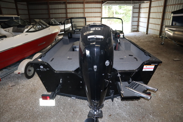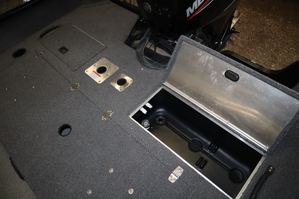 Price Includes a Mercury 90ELPT EFI, Aluminum Prop, Karavan Single Axle Trailer with Mag Wheels and swing tongue, Ulterra Quest 90/60 24V Trolling motor, Kicker KMC Stereo w/ 2 speakers, Driver seat with slider and two fishing seats, tilt steering, rear conversion bench seat, recirculating rear livewell pump for stern livewell, welded on transducer bracket, front trim switch, 2 bank battery charger, swim platform ladder, vinyl cockpit floor and three Interstate Batteries.
