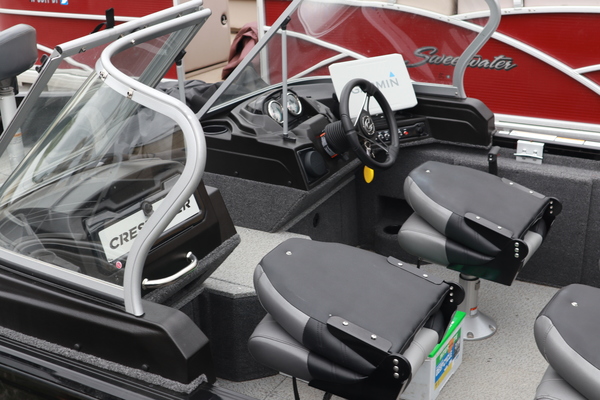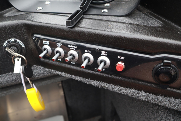 Price Includes a Mercury 200XL, Stainless Steel Prop, Hydraulic Steering w/ Tilt Wheel, Shorlandr Premium Single Axle Trailer, Midnight Edition Package, Sport Package (Swim Platform, Ski Pylon w/ Base and Boss Stereo w/ 2 Speakers), Driver Seat and 2 Movable Fishing Seats w/ Power Pedestal Bases, Vinyl Cockpit and Carpeted Decks, Bimini Sun Top and Boot, Bow Cargo Nets, Bow and Stern Livewells both Aerated w/ Timer, Rear Jump Seats, Batteries