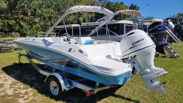 2026 Hurricane SS185 powered with a Yamaha Outboard 115hp 4-stroke (pearl white), and Magic Tilt trailer. This boat comes with the following added factory options: stainless steel upgrade package II (rubrail (white), cupholders, pull-up cleats, canopy frame, fuel cap, & grab handles), BayStar hydraulic steering w. tilt wheel, wireless phone charger, LED docking lights, ski tow bar fixed, livewll w. pump, comfort upholstery upgrade, full hull color, base vinyl (nautilus white), accent vinyl (lagoon), and stainless steel prop. Please give us a call for more information 386-328-0767.