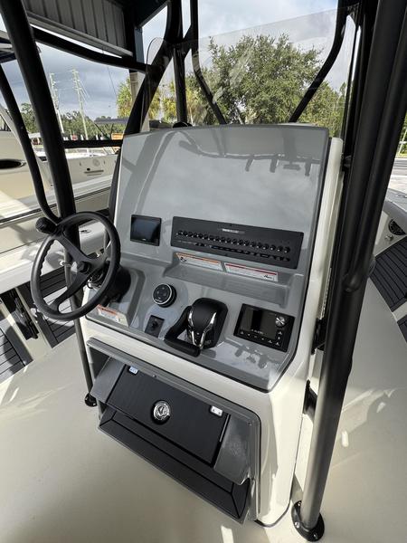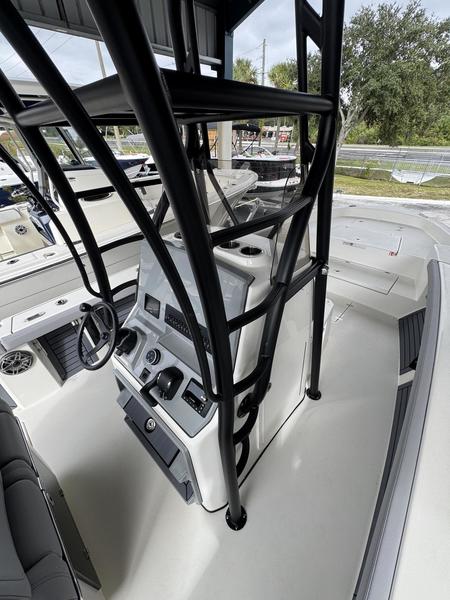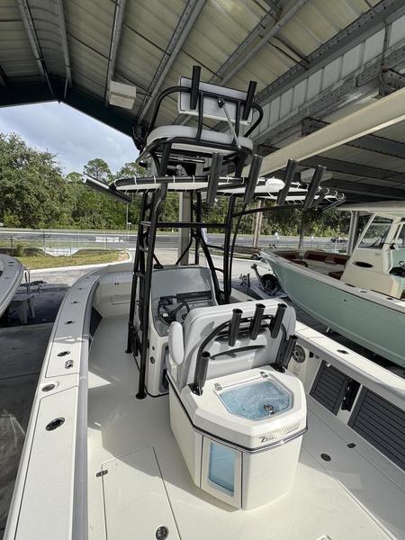 Hybrid Bay/Offshore Design: Combines the shallow-draft versatility of a bay boat with the deep-V stability and performance of an offshore center console.
