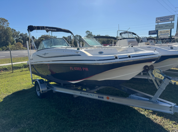 This 2015 Hurricane SunDeck 187 OB is the ideal choice for any Central Florida boater looking for comfort, capacity, and performance. Stop wasting time looking?start boating today! Max HP: 200 hp (149 kW) Length Overall: 18 ft. 10 in. (5.74 m) Beam: 101 in. (2.57 m) Draft: 13 in. (0.33 m) Dry Weight: 2600 lb. (1179 kg) Max Person Capacity: 10 persons Fuel Capacity: 36 gal. (136 L)