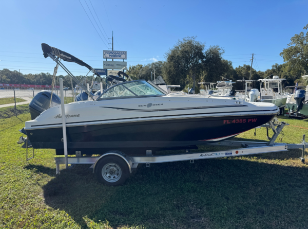 Experience the ultimate day on the water with this well-maintained 2015 Hurricane SunDeck 187 OB. Known as the best-selling deck boat on the market, the 187 combines the stable, spacious deck of a pontoon with the performance and handling of a fiberglass runabout. It?s perfectly suited for cruising the river, pulling tubers in the bay, or heading out for a day of family fishing!
