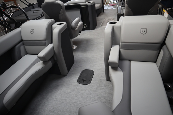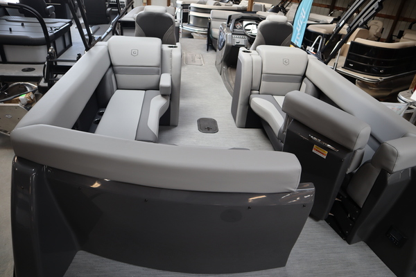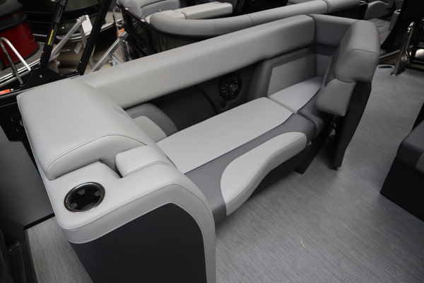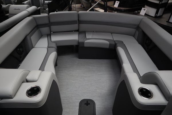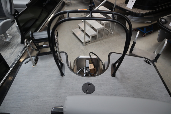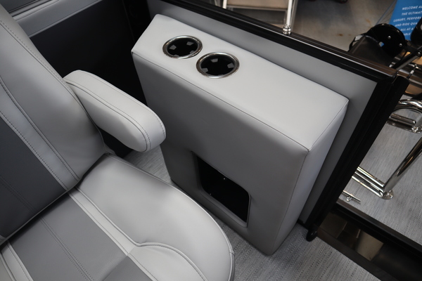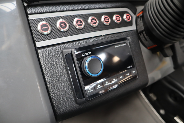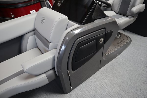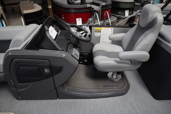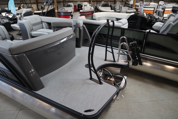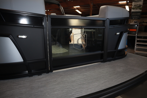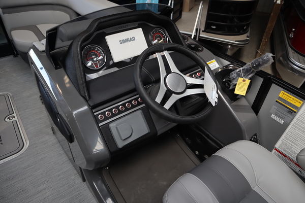 Price includes a Mercury 200XL, Stainless Steel Prop, Tandem Axle trailer with Brakes and 27" iMPACT Center Tube 2.0 Package with Centered Fuel Tank; Two 25" outer tubes with 27" center tube: Under deck skin (full length): Inside Skirting: Lifting strakes: 48 gallon fuel tank: Multifunction GPS Gauges, Back Porch Package; Adds 2' extension at rear, Midnight Package w/ Black Ultimate Ski Tow Cage (Black Skirting w/ Bow Extension, Black Rub Rail w/ Black Vinyl Insert, Black Rails, Black Canopy Frame, Black Corner Caps, Black Ultimate Ski Tow, Black Pull-Up Cleats), Extended Deck (Rear platforms integrated into deck structure with SS Safety Barrier & Gate), LED docking lights, Lilipad Ladder, SeaView Bow Gate, Sea Star Power Assist Steering with Tilt Wheel, In Floor Storage w/ Mat. Standard Power Bimini top with protective boot and dome light (Black) Teak Isle; Folding Table, Wireless Phone Charger - Charging Pad; 10W fast charging, Elevated Helm Station with Matt, Console Trashcan, Glovebox - Lockable, Simrad NSX3007 Touchscreen, Captain's & Co-Captain's Chair Recliner Chair w/ Quilting: Swivel, slider, reclining, fold down arms with 15" pedestal, USB-C charging ports: Additional USB-C Chargers throughout layout, Stainless Steel Cupholders, Toy Box Storage, Sport Black Ski Tow Bar, ScanStrut ATMOS Integrated Air Station, Stereo; Clarion Silver - CMM-30 head unit with full color LCD display, Bluetooth, AUX input, 4x25W RMS output, (4) Speakers with Sport Black Grilles & Clarion CMR-30 Premium Digital Stern Remote with full color LCD display