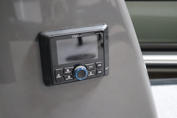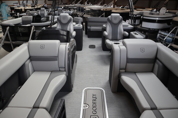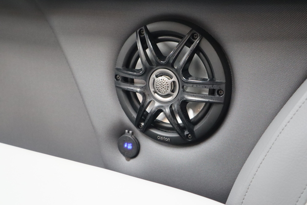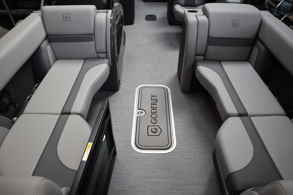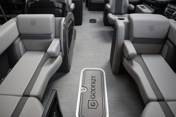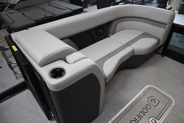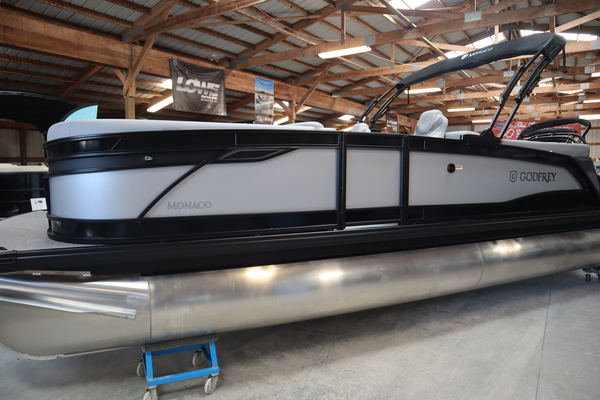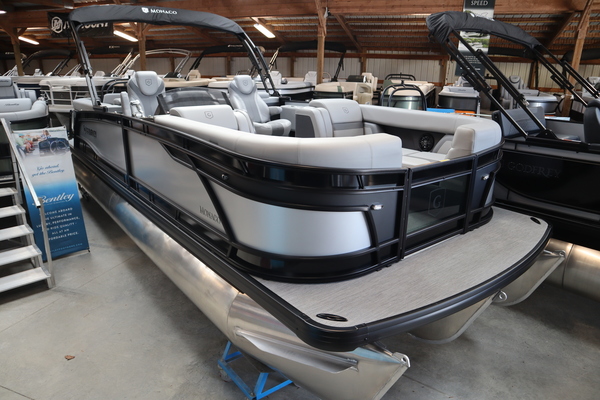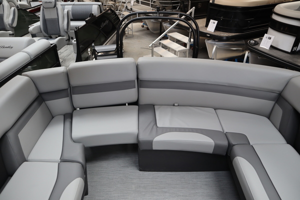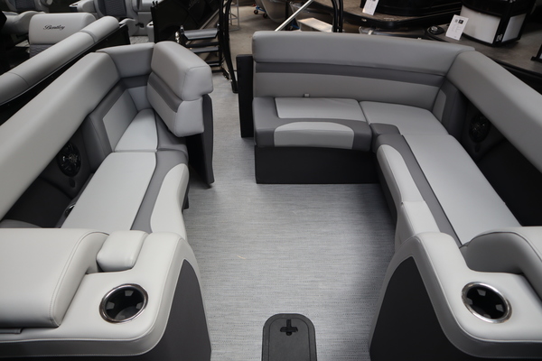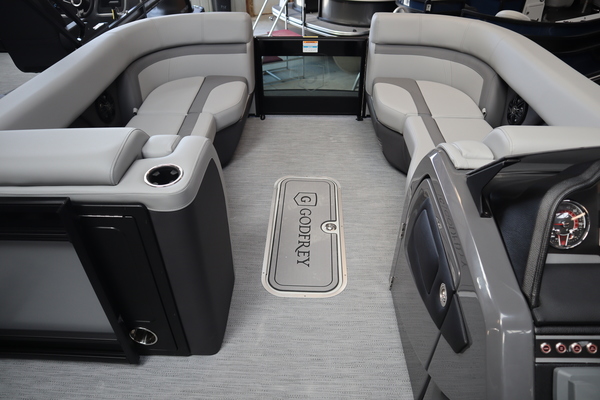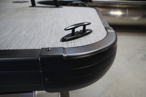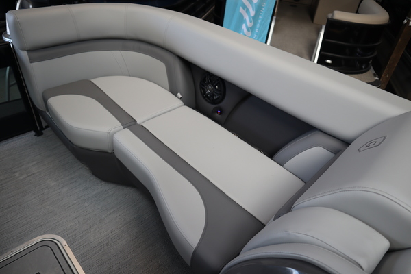 Price includes a Mercury 200XL, Stainless Steel Prop, Tandem Axle trailer with Brakes and 27" iMPACT Center Tube 2.0 Package with Centered Fuel Tank; Two 25" outer tubes with 27" center tube: Under deck skin (full length): Inside Skirting: Lifting strakes: 48 gallon fuel tank: Multifunction GPS Gauges, Back Porch Package; Adds 2' extension at rear, Midnight Package w/ Black Ultimate Ski Tow Cage (Black Skirting w/ Bow Extension, Black Rub Rail w/ Black Vinyl Insert, Black Rails, Black Canopy Frame, Black Corner Caps, Black Ultimate Ski Tow, Black Pull-Up Cleats), Extended Deck (Rear platforms integrated into deck structure with SS Safety Barrier & Gate), LED docking lights, Lilipad Ladder, SeaView Bow Gate, Sea Star Power Assist Steering with Tilt Wheel, In Floor Storage w/ Mat. Standard Power Bimini top with protective boot and dome light (Black) Teak Isle; Folding Table, Wireless Phone Charger - Charging Pad; 10W fast charging, Elevated Helm Station with Matt, Console Trashcan, Glovebox - Lockable, Simrad NSX3007 Touchscreen, Captain's & Co-Captain's Chair Recliner Chair w/ Quilting: Swivel, slider, reclining, fold down arms with 15" pedestal, USB-C charging ports: Additional USB-C Chargers throughout layout, Stainless Steel Cupholders, Toy Box Storage, Sport Black Ski Tow Bar, ScanStrut ATMOS Integrated Air Station, Stereo; Clarion Silver - CMM-30 head unit with full color LCD display, Bluetooth, AUX input, 4x25W RMS output, (4) Speakers with Sport Black Grilles & Clarion CMR-30 Premium Digital Stern Remote with full color LCD display