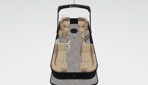 Price includes a Mercury 200XL, Stainless Steel Prop, Tandem Axle trailer with Brakes and Center Log Kit 27" iMPACT Center Tube Package (Two 25" outer tubes with 27" center tube; Under deck skin (full length); Inside Skirting; Lifting strakes; 45 gallon fuel tank; Multi-function GPS Gauges; Heavy Duty Channels), Midnight Package (Black Skirting w/ Bow Extension, Black Aluminum Rub Rail, Black Rails, Black Canopy Frame, Black Corner Caps), Extended Rear Deck, LED docking lights, Lillipad Ladder, SeaView Bow Gate, Gate Filler Seat, Sea Star Hydraulic Steering with Tilt Wheel, Stainless Steel Fixed Cleats, In Floor Storage w/ Mat. Standard Power Bimini top with protective boot and dome light (Black) Teak Isle; Tilt Out Trash Can, Wireless Phone Charger - Charging Pad; 10W fast charging, Round Table and Base, Captain?s Chair Upgrade with slider, reclining and fold down arms & 3 Standard Chairs with swivel bases, USB-C charging ports: Additional USB-C Chargers throughout layout, Sport Black Ski Tow Bar, Stereo; Clarion Plus Stereo Package: CMM-10 head unit with LCD display, Bluetooth, 4x20W RMS output, and (4) Speakers with Gray Grilles