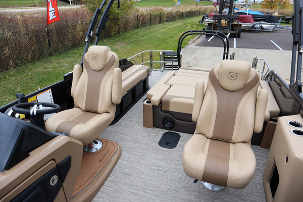 Enjoy twice the comfort with optional, purpose-built twin captain’s chairs. Adding more comfort and confidence, our available co-captain layout features an identical port located chair with 360-degree rotation, height and seat-back control and adjustable armrests.