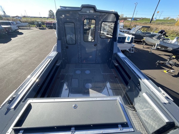 Weather rolling in? Not a concern for the Alaskan. The all-welded hull lets you slice through the waves so you can limit out, and the optional sleeper seats, galley, dinette table, and full standup head closet allow you to anchor up comfortably in a secluded bay. With a roomier cabin, larger fishing deck, and increased stability, the Alaskan inspires you to Be Your Own Guide.