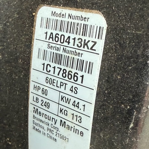 - 60 HP Mercury, 4 Stroke, 51 Hours (Fresh Service)