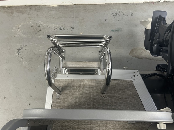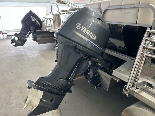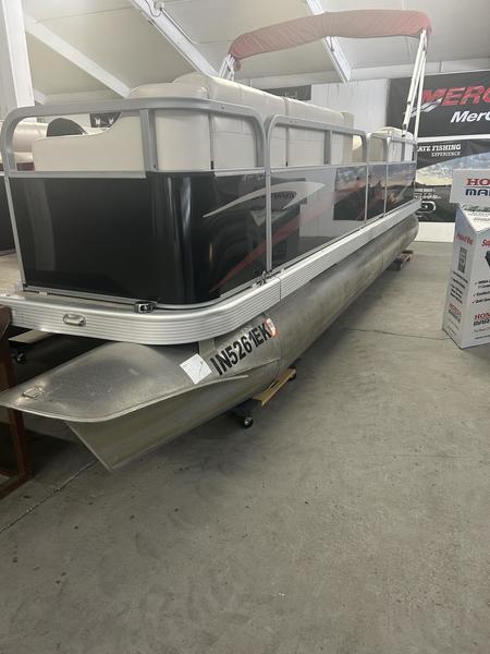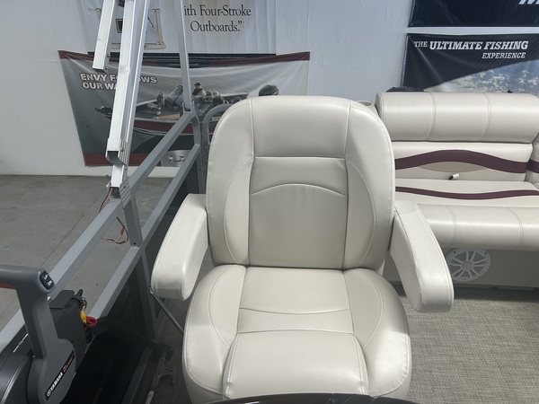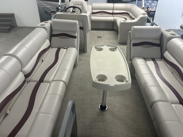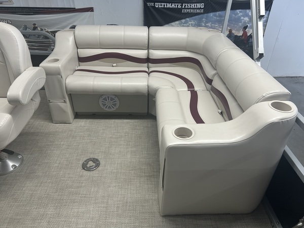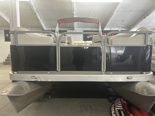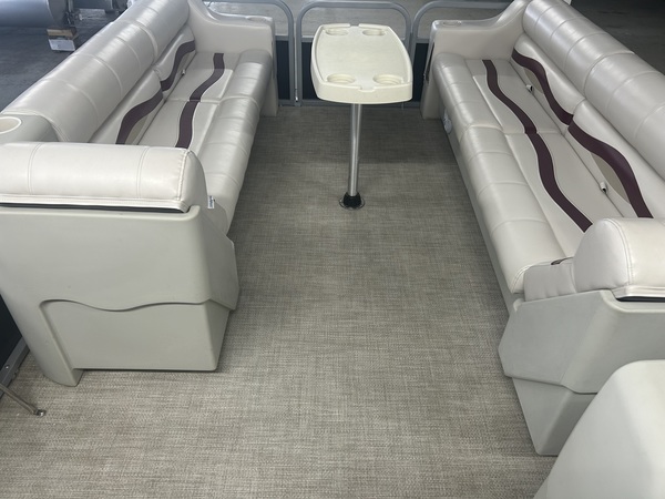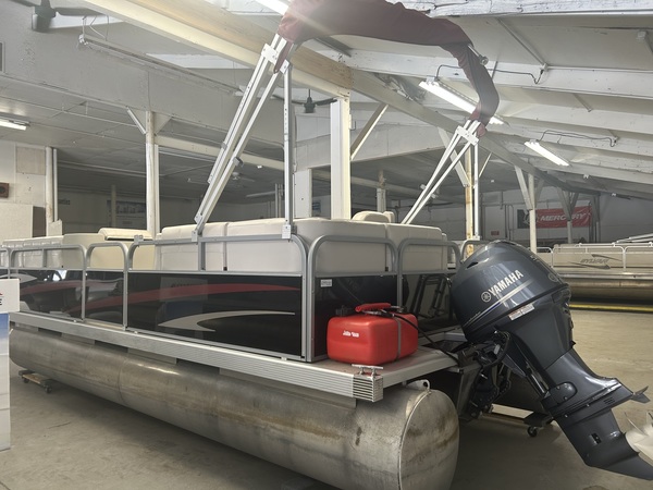 Very nice newer rehabbed pontoon with new vinyl flooring, seat package and bimini top! Features and accessories include 2 - 22" pontoons, 10-person capacity, table with pedestal and 2 mounts, bimini top, dock lights, ski tow rings, rear 4 step telescoping ladder, 6-gallon fuel tank, RPM & Volt gauges, Boss Audio System with Bluetooth & 4 speakers, USB port, composite seat bases with drains, navigation lights, fire extinguisher, horn, stainless-steel cleats, and cupholders. Extras include a large inflatable, boat hook, 2 throwable seat cushions, lifejackets and anchor with lines. There is no cover with this boat. It was stored on a lift during the summer and garage kept in the winter months. A custom cover can be made for this boat. Ask us for pricing. Motor is covered by a 60-day 50/50 parts and labor warranty that would start on May 1, 2026. If purchased during the winter months, we'll shrink-wrap the boat and store it at no charge until spring.