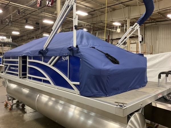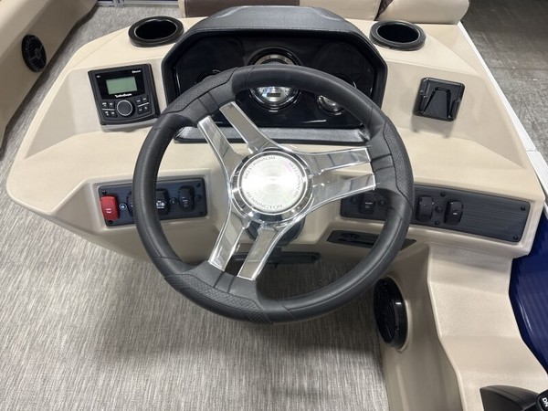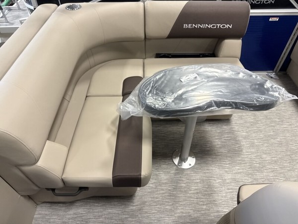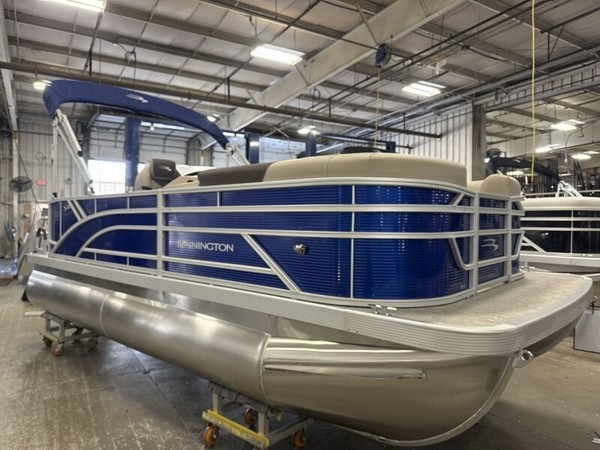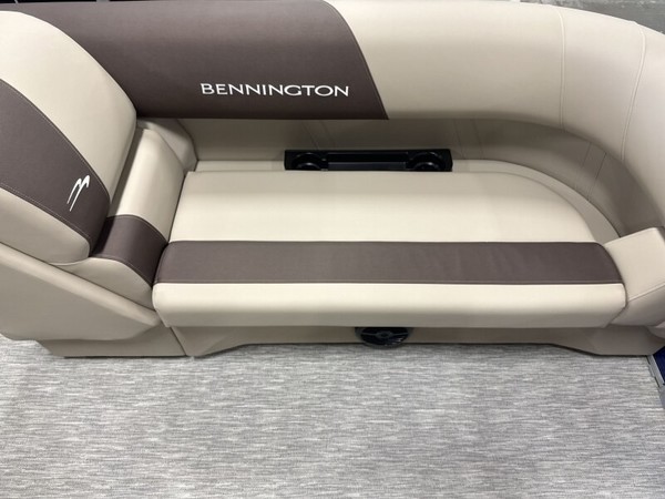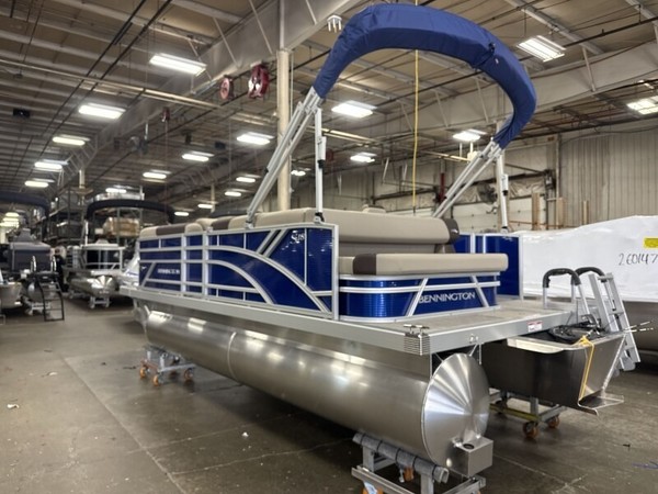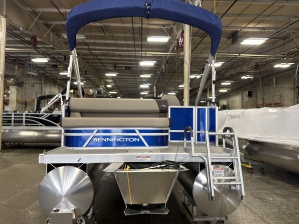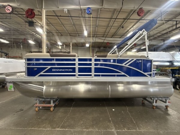 Do you live on a small lake or just want a smaller pontoon? This Bennington 18 SLJ has a lot of nice standard features and options. The features and options include 2- 25" pontoon, steering wheel Lacolla, windshield S series, switch single battery SWBK SV/S, Yamaha fuel/water separator, tilt steering, Serene soft touch vinyl w/Simtex accent, SST black rimmed cupholders, lighted gate glides, Shoreline Woven Driftwood vinyl flooring, Duraframe seat bases, fire extinguisher, horn, Pure Comfort reclining captain's seat, kidney-shaped table, stern storage compartment, 6" SST cleats, Deep-Step stern boarding ladder, Quick Release 10' bimini top, Surlast embroidered boot, Quick Clip Surlast mooring cover, underdeck spray deflectors, integrated docking and navigation lights, raised Bennington logos, console courtesy light, one piece rotomold console, polished steering wheel, locking helm glovebox, rocker switches w/dash mount breakers, custom sterling gauge package (fuel, tachometer, trim, and hour meter), 12V receptacle, USB port (Type A & C), locking side access console door, ironwood dash accents, and Rockford Fosgate Stereo w/speakers.