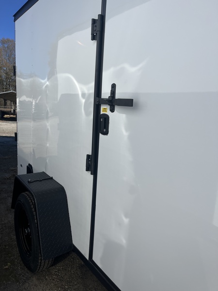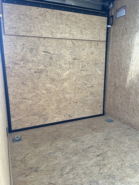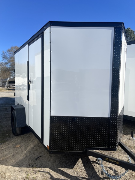 6x10, 3500# axle, 15" tires, 24" vnose, 24" ATP stoneguard, 32" side door w/cam lock, ramp door, side wall vents, 4 recessed d-rings, *BLACK OUT PACKAGE*