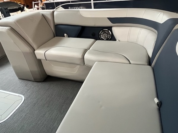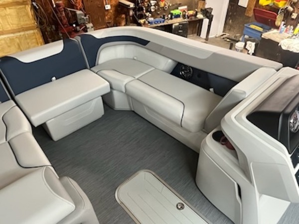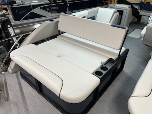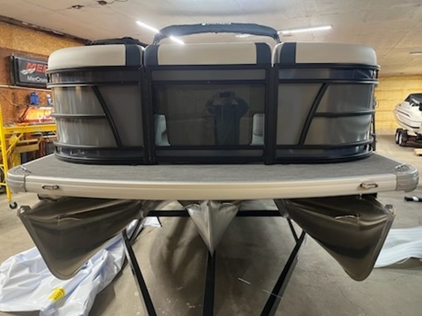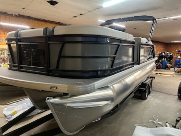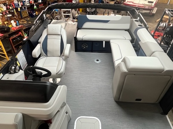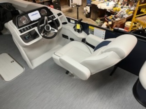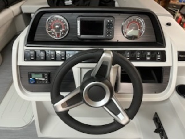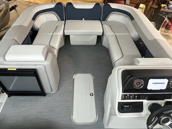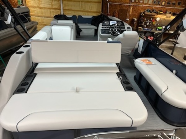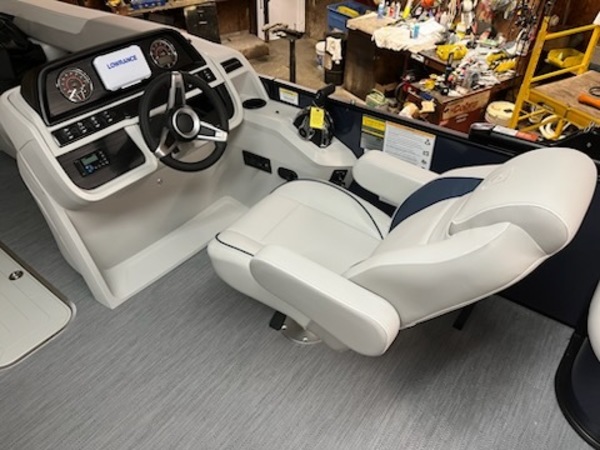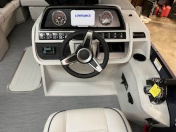 2026 Sweetwater 2286SFL is a versatile layout offering comfort and features to make the most of your day on the water. Performance is provided with the 27" IMPACT triple tube performance package, lifting strakes, wave shield, hydraulic steering, and powered with a 200 HP Mercury. Options include power bimini top, in floor storage locker with dedicated anchor storage, Lowrance depth / fish finder with water temp and speed, Clarion bluetooth stereo, GPS gauge package, hour meter, battery switch, docking lights, 5 step easy boarding ladder, phone charging pad and more. The versatile rear lounger is protected with a stainless steel barrier with gates and a ski tow bar.
