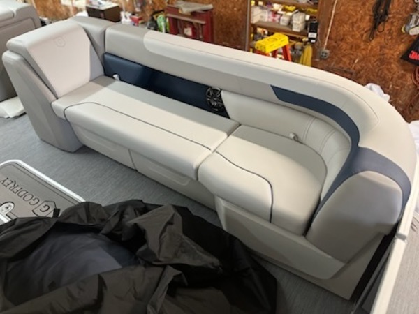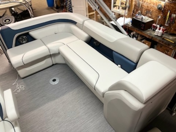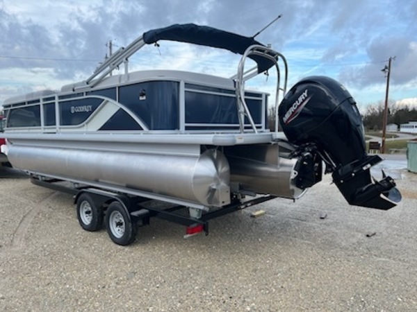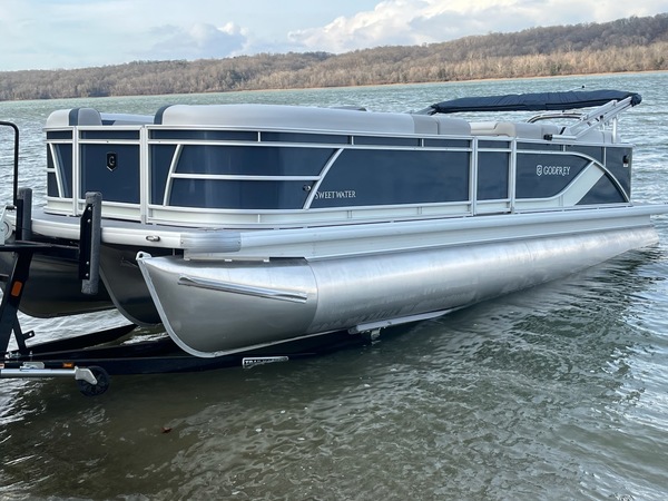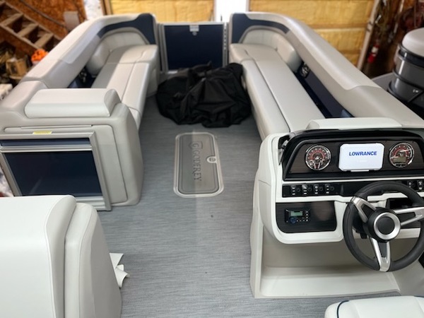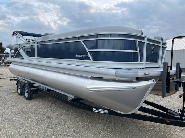 The Sweetwater Cruise. That kinda says it all. Cruise the lake in comfort and style with options including a power bimini top, Lowrance depth / fish finder with water temperature and speed, GPS gauges with hour meter, Clarion stereo and more. Want to take it up a notch? The 27 IMPACT triple tube performance package with hydraulic steering, wave shield and lifting strakes combined with a powerful Mercury 150 and you've not got a real performer. Ski tow bar allows for water sports or just enjoy a smooth and spirited ride. Whatever you're after you've got it all with the Sweetwater Cruise!