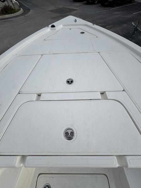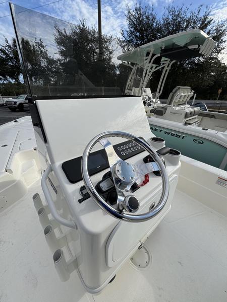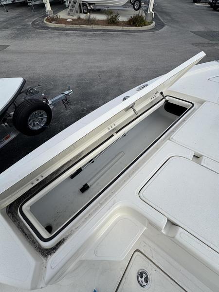 Durability: Coastal white rub-rail with stainless steel inserts and premium marine-grade upholstery designed for the harsh Florida salt environment. Engine Type: V6 Engine Horsepower: 250 bhp; 186.5 kW Displacement: 254 cu. in. (4169 cc) Cylinders: 6 Length Overall: 289 in. (7300 mm) Beam: 101 in. (2.6 m) Dry Weight: 2925 lb. (1326.8 kg.) Max Person Capacity: 8 Fuel Capacity: 75 gal. (283.9 L) Max Carry Load: 1910 lb. (866.4 kg.)