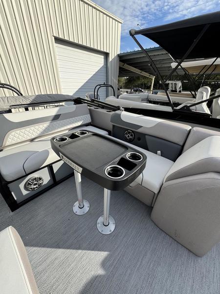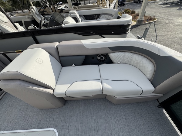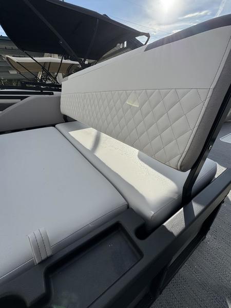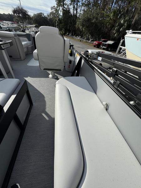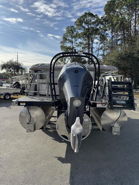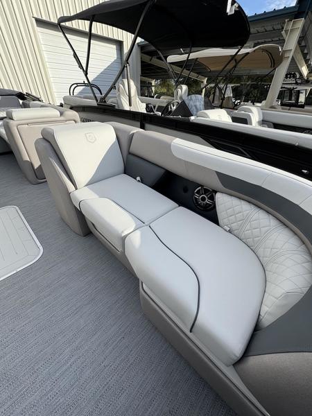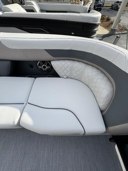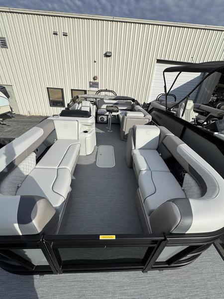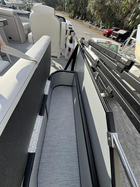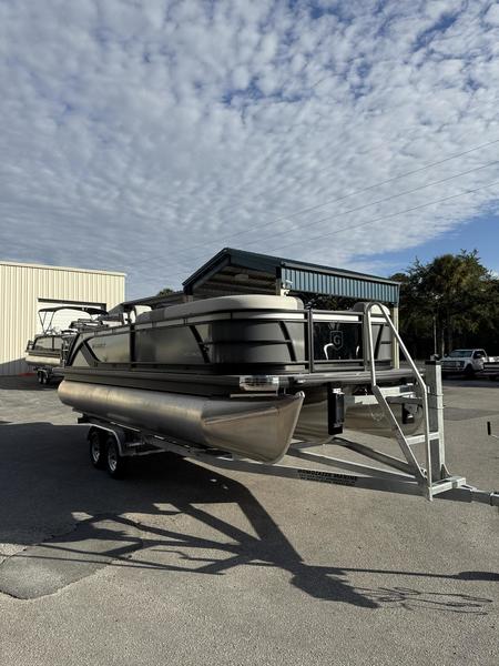 This 2286 SFL features the high-performance 27" iMPACT+ Triple Tube Package. Unlike standard two-tube pontoons, this tritoon setup provides significantly more buoyancy, faster planing, and a much smoother ride in choppy conditions. Combined with lifting strakes and an aluminum under-deck skin, it offers the "V-hull" style performance that makes crossing the bay a breeze.