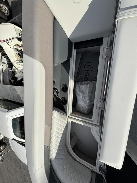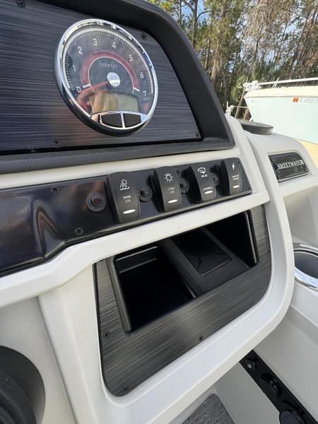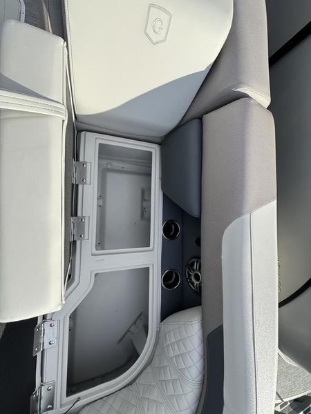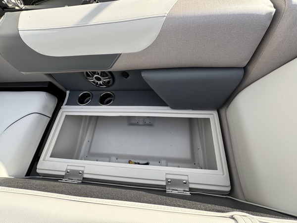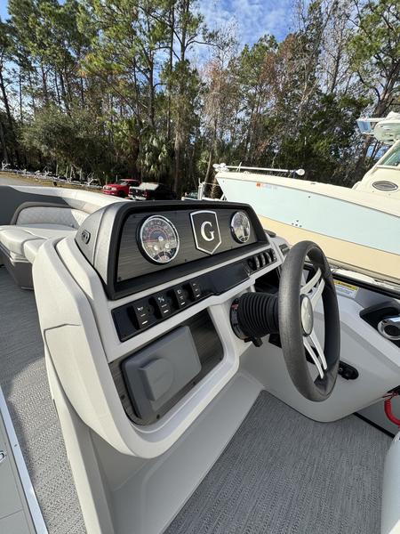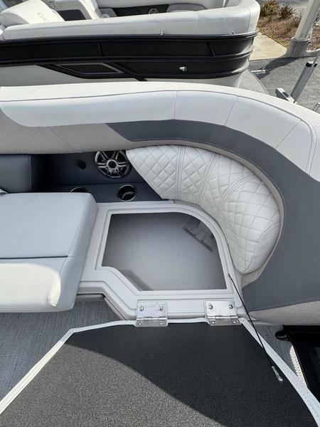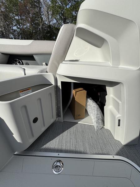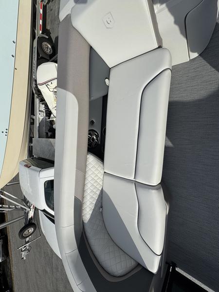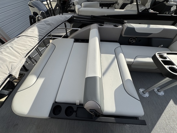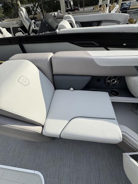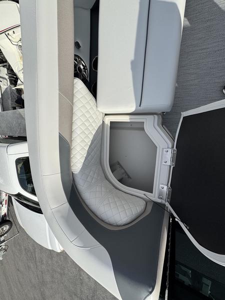 Ample Storage: Includes a dedicated stern toy box, under-seat storage throughout, and optional in-floor locker for skis and larger gear. Engine HP: 20 bhp; 14.7 kW Engine Displacement: 20.3 cu. in. (333 cc) Deck Length: 286 in. (7300 mm) Deck Width: 102 in. (2.6 m) Weight: 2506 lb. (1136.7 kg.) Capacity: 2265 lb. (1027.4 kg.) Number of Tubes: 2 Fuel Capacity: 30 gal. (113.6 L)