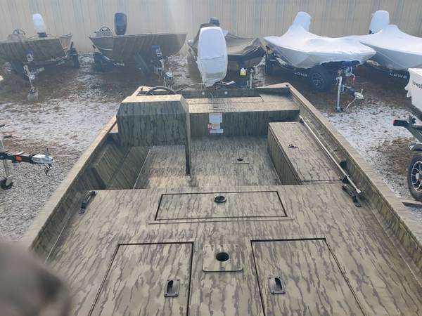 Price includes a Mercury 40ELPTEFI 4-stroke JET, Karavan Trailer with Swing Tongue, Snap Seat Cushion, Bow Aerated 19-Gal Livewell, Cockpit Seating w/ Two Fishing Seats and Four Total Bases, Factory Installed Console, Spray-In Roughliner, Sponson Pods, 12-Gal Portable Fuel Tank, Convenience Package (Navigation Lights, Bilge Pump and Trolling Motor Wiring Harness), Rod/Gun Box and an Interstate Battery. Color is Mossy Oak Bottomland Paint. Price includes dealer prep and freight and all factory rebates.