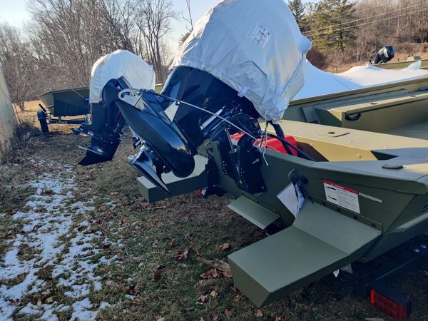 Price includes a Mercury 40ELPTEFI 4-stroke JET, Karavan Trailer with Swing Tongue, Snap Seat Cushion, Bow Aerated 19-Gal Livewell, Cockpit Seating w/ Two Fishing Seats and Four Total Bases, Factory Installed Console, Spray-In Roughliner, Sponson Pods, 12-Gal Portable Fuel Tank, Convenience Package (Navigation Lights, Bilge Pump and Trolling Motor Wiring Harness), Rod/Gun Box and an Interstate Battery. Color is Dead Grass Green Paint. Price includes dealer prep and freight and all factory rebates.